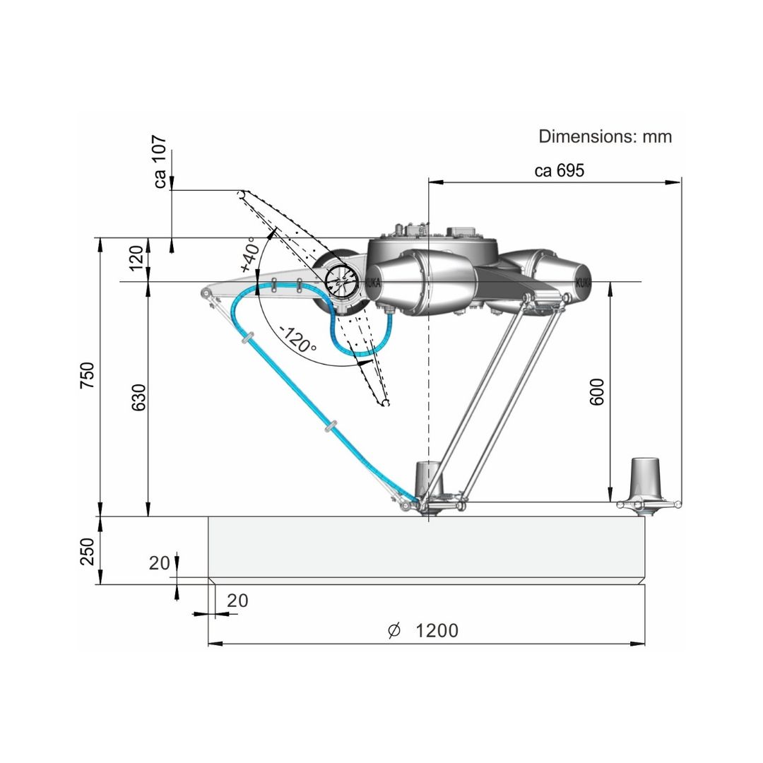 KR DELTA, 250 mm yükseklik ve 1.200 mm çapa sahip silindirik bir çalışma alanında son derece güvenli çalışmaktadır.